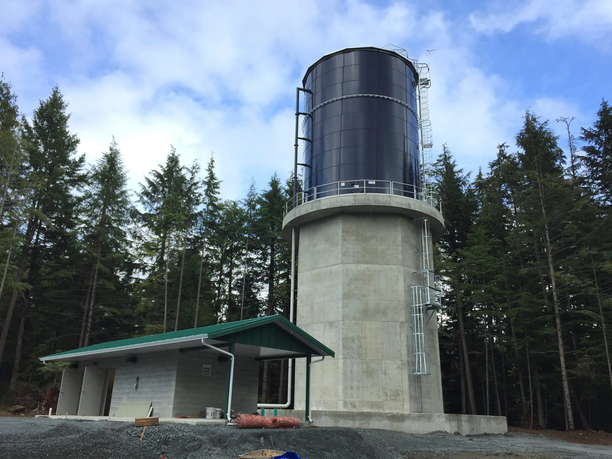 The concrete base for this water tower is 42′ high and has a volume of 577 cubic meters of concrete, not a problem for our experienced concrete crews.